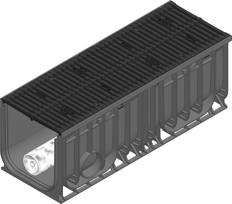 DRAINFIX CLEAN RPR 300 BASIC filter substrate channel with ductile iron cover slot width 2x 141/9 mm for class C 250 with drainage pipe with geotextile and connection element
