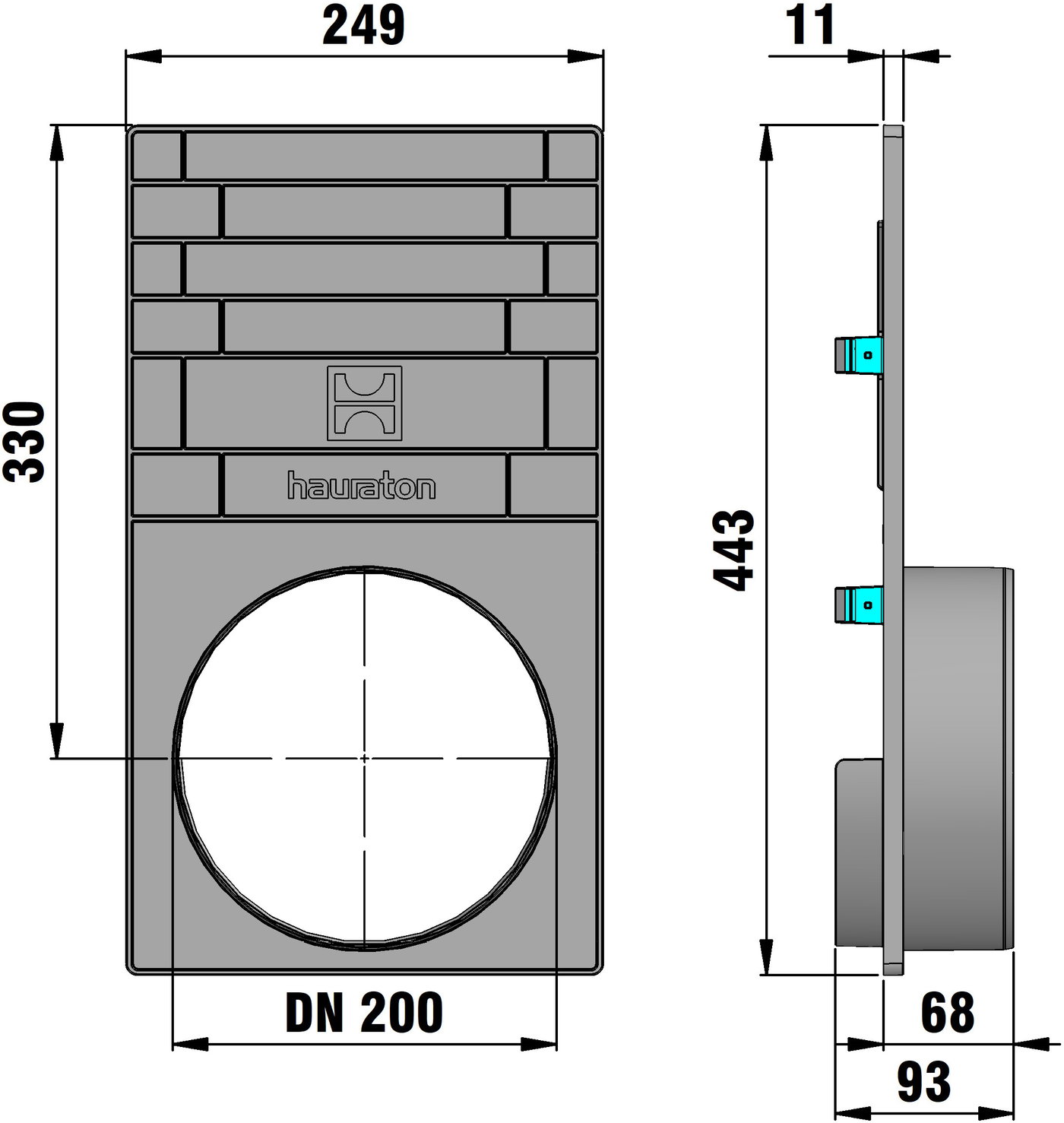 for NW 200, for Type 450, with integrated pipe outlet DN/OD 200, made of PP