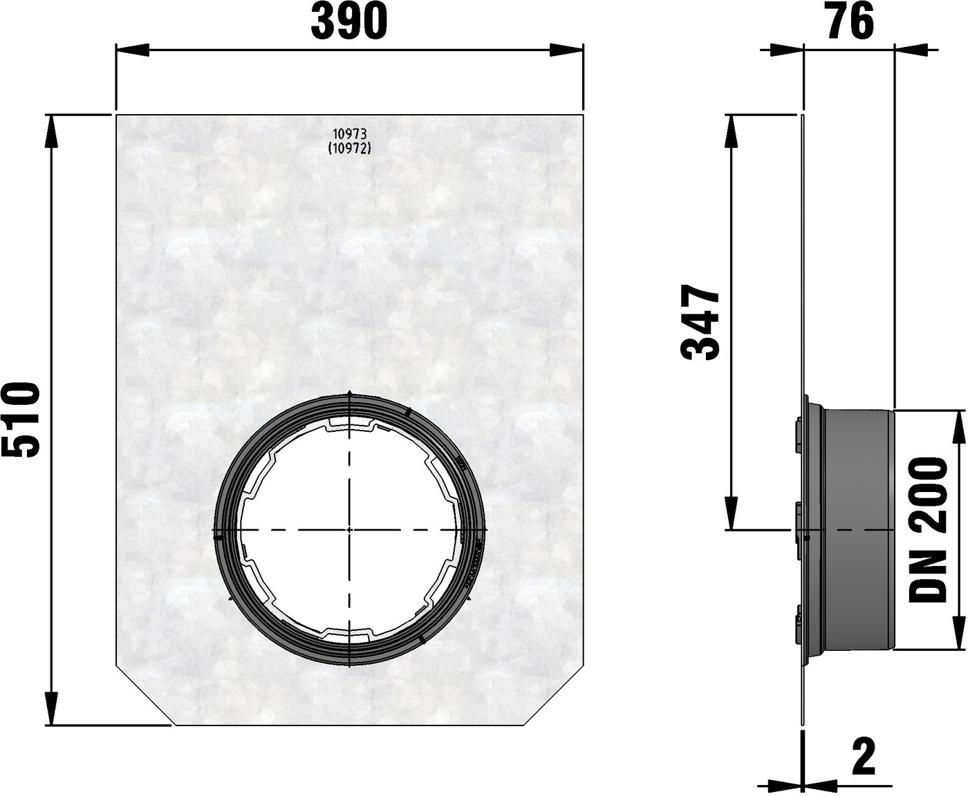 for NW 300, for type 11 - 020, with KG2000-PVC-U pipe outlet DN/OD 200, galvanised