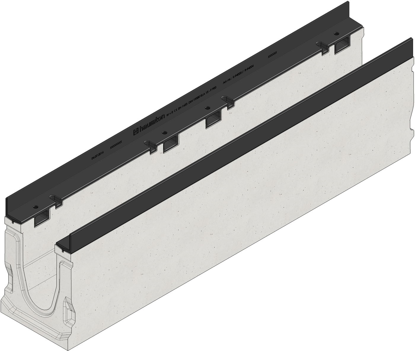 FASERFIX SUPER 100 Channel body type 020L with outlet DN/OD 110, with edge frames made of KTL-coated ductile iron, 1 m
