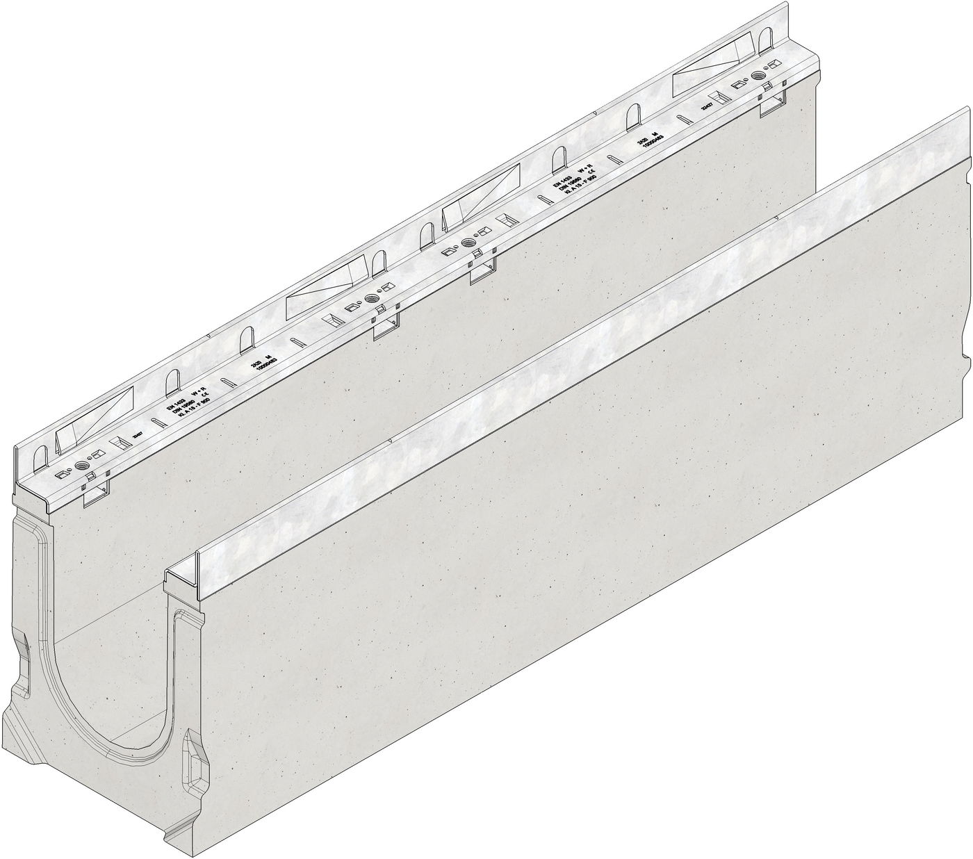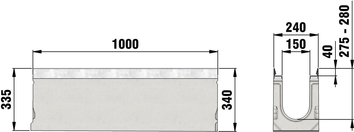 FASERFIX SUPER 150 type 1 - 19 - Channel body made of fibre-reinforced concrete, load class A 15 - F 900 according to EN 1433, CE compliant, sloping depth channel 0.5 %, with edge frame made of galvanised steel, with boltless quick-locking system SIDE-LOCK for quick and easy installation of the cover, 8-fold bolting additionally possible, 8-fold locking, with sealing groove, LxWxH 1000x240x255-350 mm, item no. 22001 - 22019