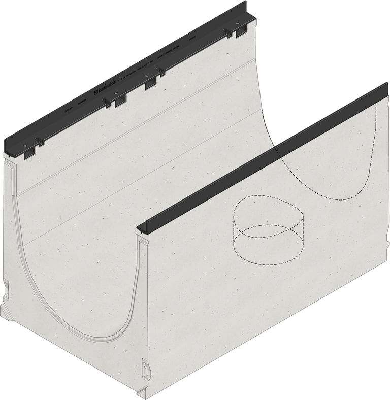 FASERFIX SUPER 500 Channel body type 01L with outlet DN/OD 200, with edge frames made of KTL-coated ductile iron, 1 m