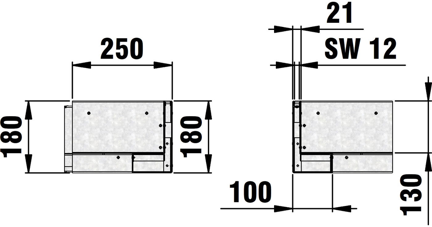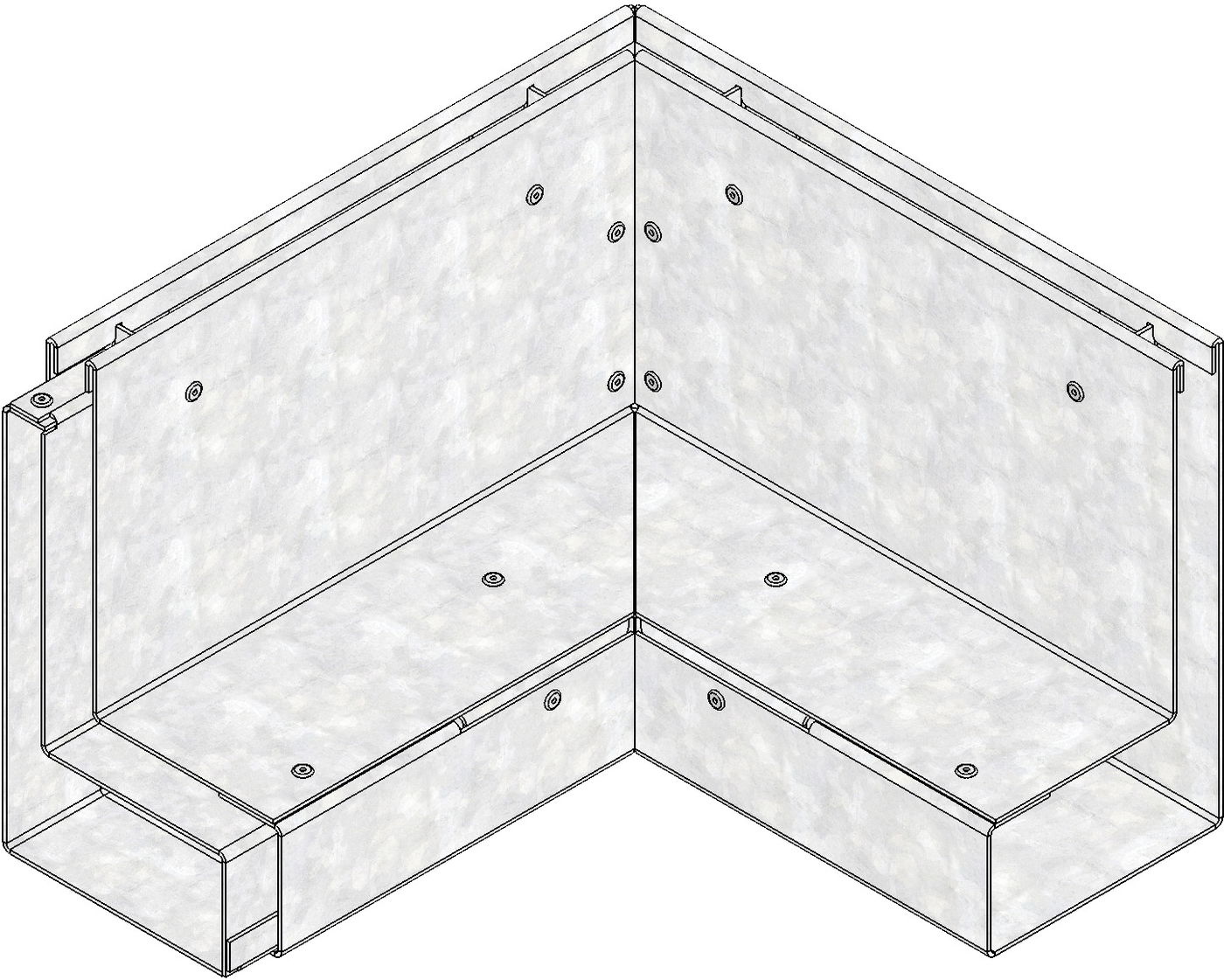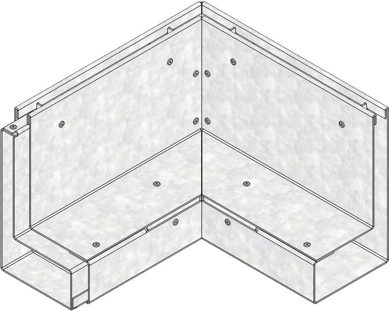 STEELFIX SLOT 100 type 180, Corner element inside corner, slot width 12 mm, neck height 130 mm, side length 250 mm at channel neck, made of galvanised steel, load class A 15, with connector as clamp-fit between channels and/or access units, item no. 10311