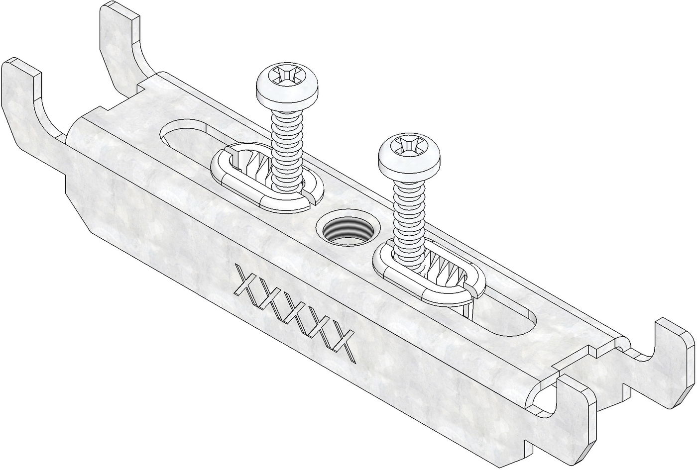 DACHFIX STEEL/STEELFIX REGULAR 115 -Locking mechanism against vandalism, made of galvanised steel, for mesh cover MS 30/10 mm, made of galvanised steel, demand 2 sets/metre, item no. 65592