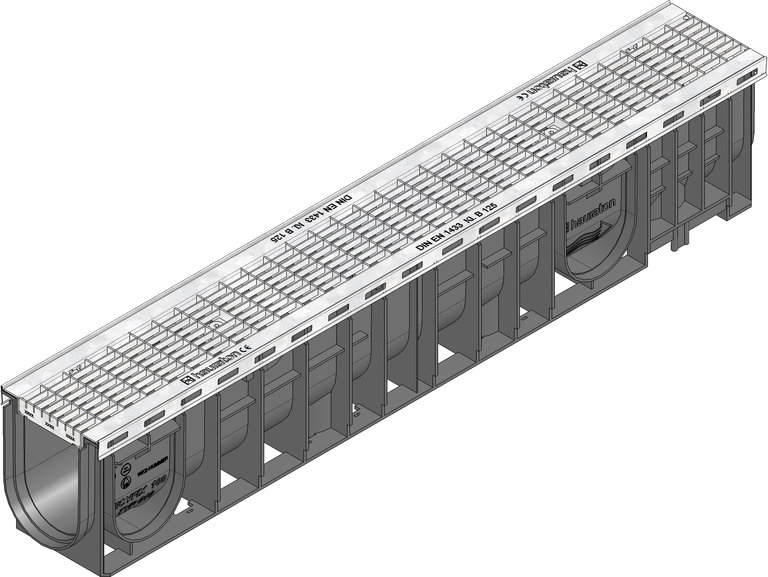 RECYFIX PLUS 100 Channel type 010 with edge frames made of galvanised steel and mesh cover MS 30/10 mm, galvanised, cl. B 125, locked, 1 m