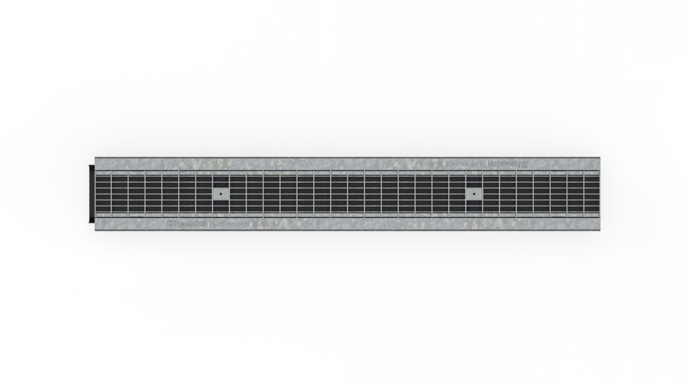 RECYFIX PLUS 100 Channel type 80 with edge frames made of galvanised steel and mesh cover MS 30/10 mm, galvanised, cl. B 125, locked, 1 m