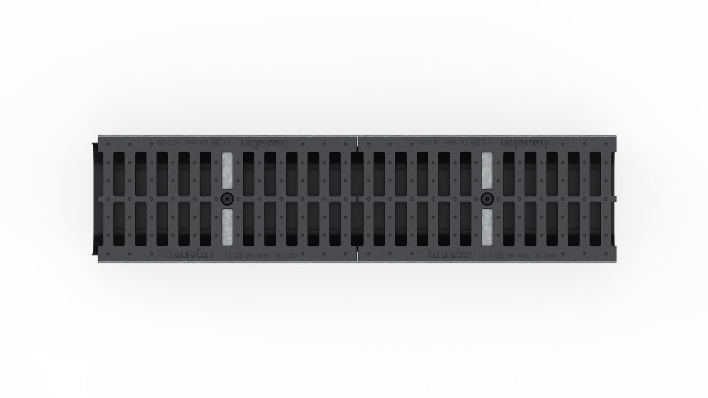 RECYFIX PLUS 200 Channel type 010 with edge frames made of galvanised steel and ductile iron cover 2x SW 85/18 mm, black, cl. C 250, locked, 1 m