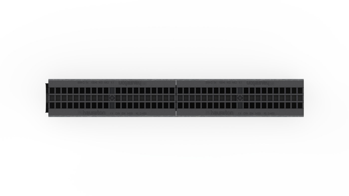 RECYFIX PLUS X 100 Channel type 01 with edge frames made of galvanised steel and GUGI-ductile iron mesh cover MS 15/25 mm, black, cl. D 400, locked, 1 m
