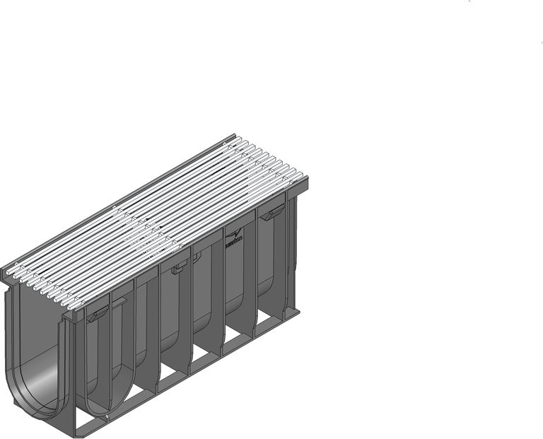 RECYFIX PRO 100 type 020 - Channel body made of recycled polypropylene, with integrated edge frames, with longitudinal cover Filigree bar distance 8 mm, stainless steel CNS 1.4301, with locking, load class A 15 according to EN 1433, LxWxH 500x160x250 mm, item no. 47169