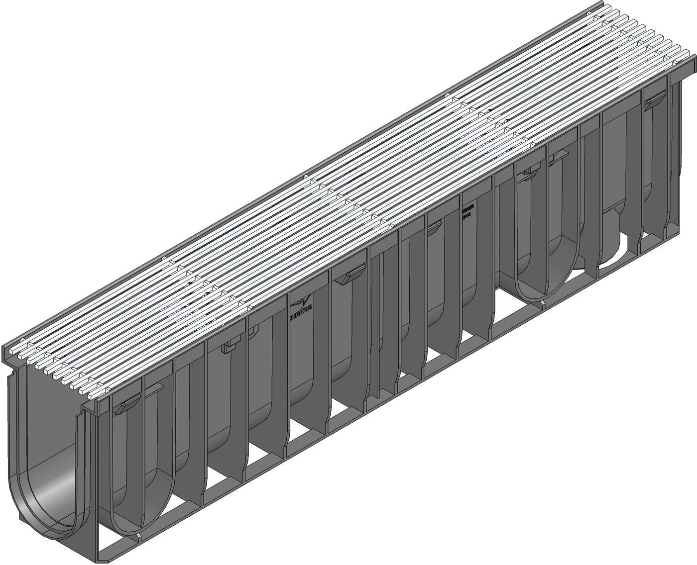 RECYFIX PRO 100 Channel type 020 with integrated edge frames, with longitudinal cover Filigree, bar distance 8 mm, stainless steel , cl. A 15, locked, 1 m