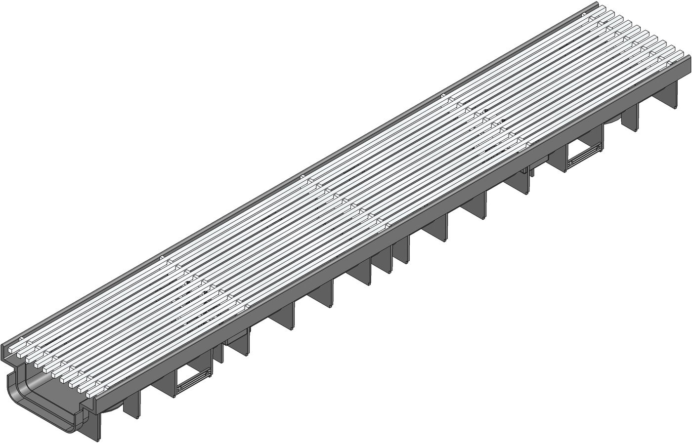 RECYFIX PRO 100 Channel type 75 with integrated edge frames, with longitudinal cover Filigree, bar distance 8 mm, stainless steel, cl. A 15, locked, 1 m