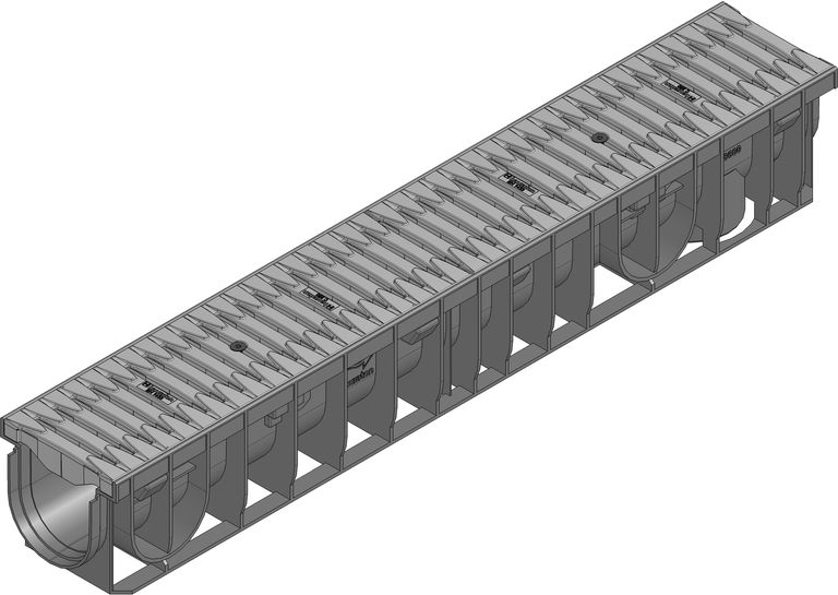 RECYFIX PRO 100 Channel type 01 with integrated edge frames, with FIBRETEC Design slotted cover SW 110/9 mm, in the colour Stone, cl. C 250, locked, 1 m