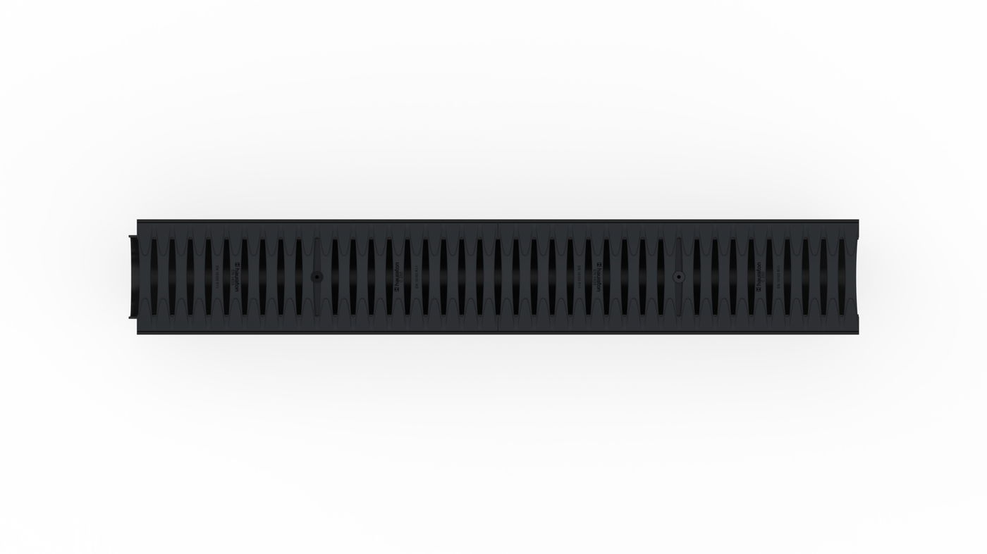 RECYFIX PRO 100 Channel type 010 with integrated edge frames, with FIBRETEC Design slotted cover SW 110/9 mm, black, cl. C 250, anti-slip resistance class R11, locked, 1 m