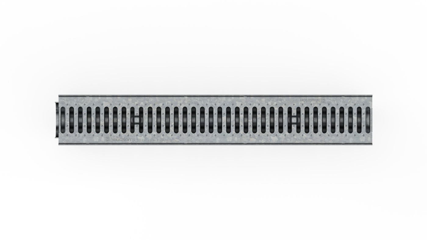 RECYFIX PRO 100 Channel type 010 with integrated edge frames, with reinforced slotted cover SW 80/10 mm, galvanised, cl. C 250, locked, 1 m