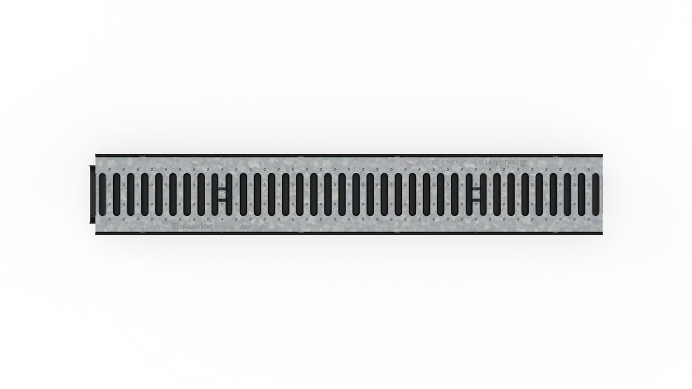 RECYFIX PRO 100 Channel type 95 with integrated edge frames, with reinforced slotted cover SW 80/10 mm, galvanised, cl. C 250, locked, 1 m