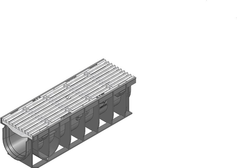 RECYFIX PRO 100 type 01 - Channel body made of recycled polypropylene, with integrated edge frames, with longitudinal ductile iron cover bar distance 9 mm, made of spheroidal ductile iron EN-GJS-500-7, galvanised, with longitudinal slide protection and locking, load class A 15 - D 400 according to EN 1433, LxWxH 500x160x150 mm, item no. 48633