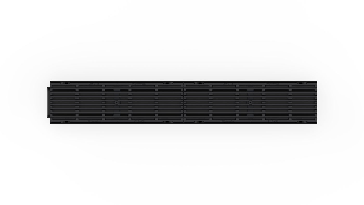 RECYFIX PRO 100 type 95 - Channel body made of recycled polypropylene, with integrated edge frames, with vertical connection possibility DN/OD 75, with longitudinal ductile iron cover bar distance 9 mm, made of spheroidal ductile iron EN-GJS-500-7, KTL-coated, with longitudinal slide protection and locking, load class A 15 - D 400 according to EN 1433, LxWxH 1000x160x95 mm, item no. 47065