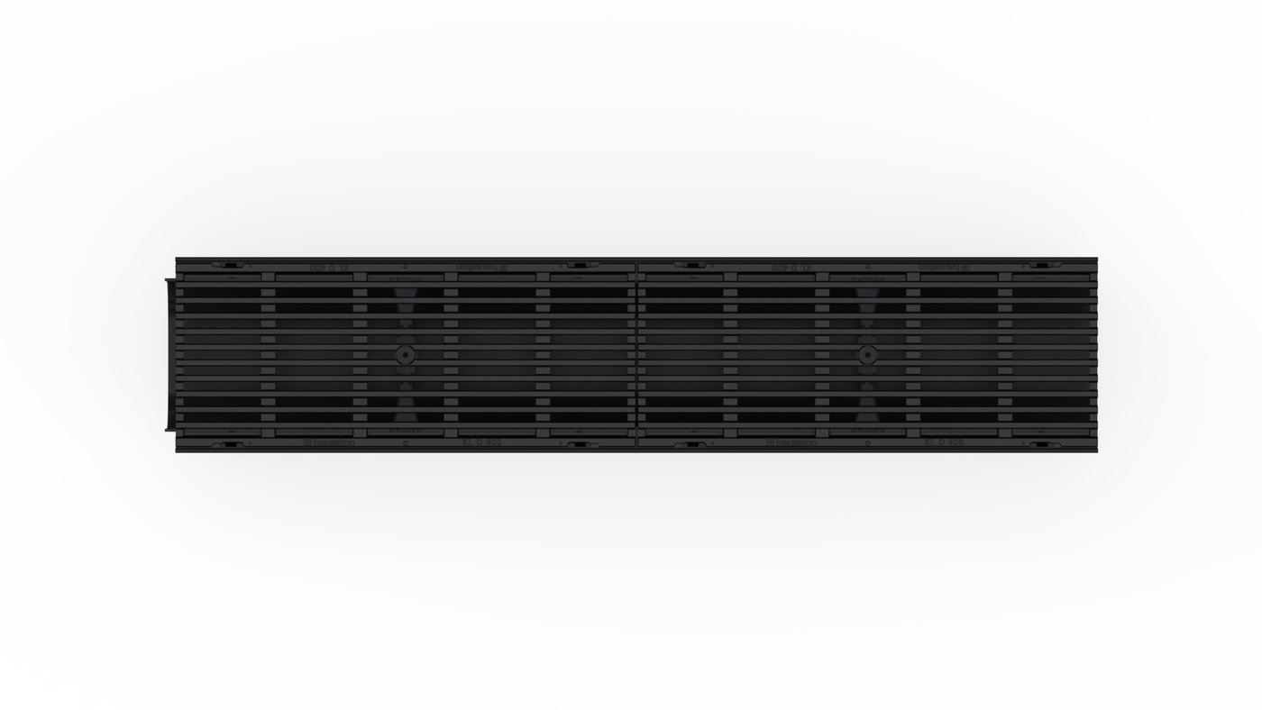 RECYFIX PRO 150 Channel type 01 with integrated edge frames, with longitudinal ductile iron cover bar distance 9 mm, KTL-coated, cl. D 400, locked, 1 m