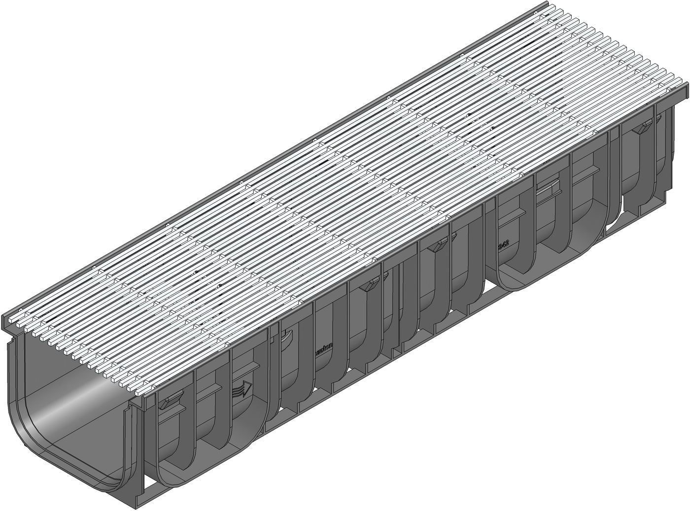 RECYFIX PRO 200 Channel type 010 with integrated edge frames, with longitudinal cover Filigree, bar distance 8 mm, stainless steel , cl. A 15, locked, 1 m