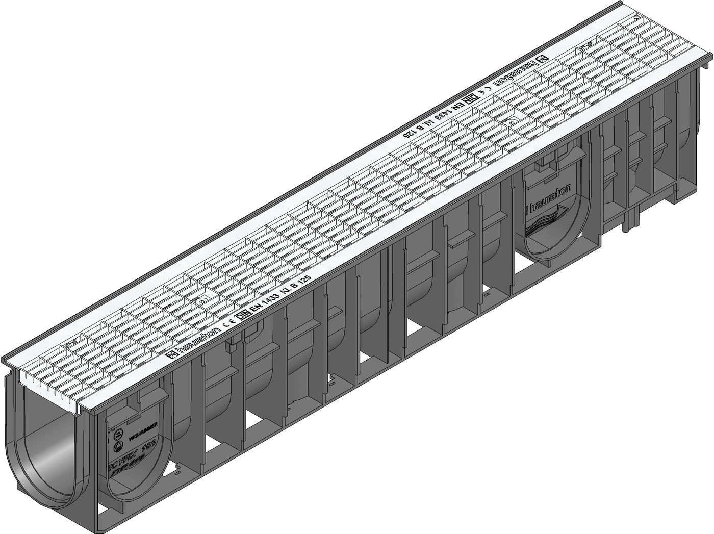 RECYFIX STANDARD 100 Channel type 010 with mesh cover MS 30/10 mm, stainless steel, cl. B 125, locked, 1 m