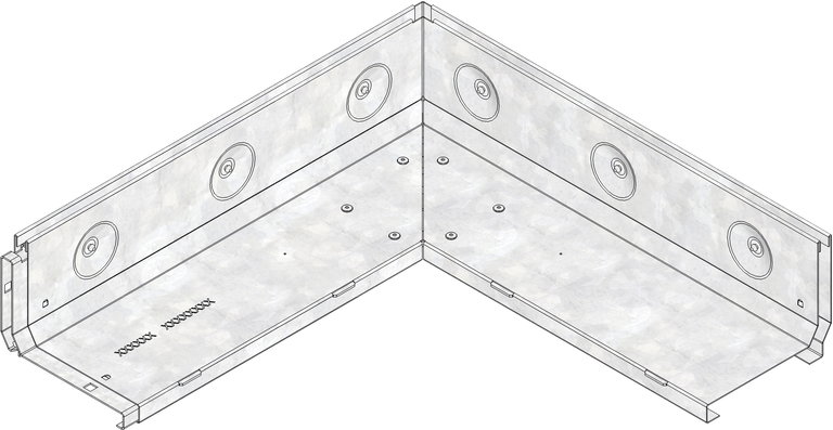 Slotted cover SW 10 mm, neck height 105 mm, galvanised, asymmetric, as corner element inside corner 90°, with integrated, full-surface connector, cl. A 15, FASERFIX KS/ FASERFIX STANDARD/ RECYFIX PRO 100, side length 0.5 m