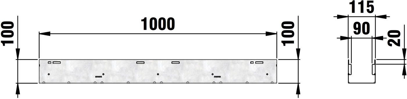 STEELFIX REGULAR 115 Channel body type 100, galvanised, installation height 100 mm, 1 m