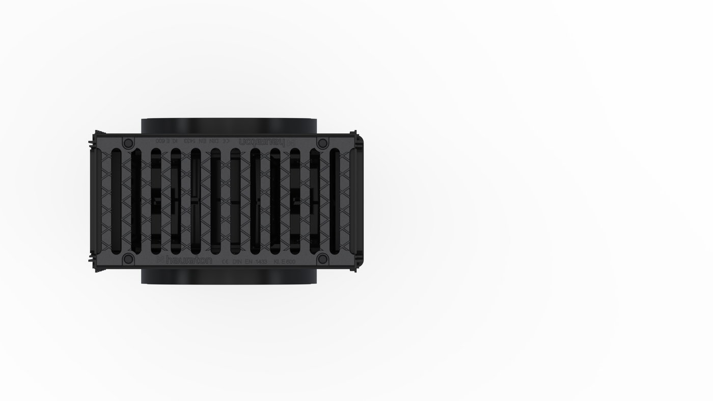Sump unit with integrated edge frames, with ductile iron cover SW 204/18 mm, black, cl. E 600, with 4-fold bolting, with silt bucket made of recycled PP, with 2 end caps made of recycled PP, RECYFIX NC 200, 0.5 m