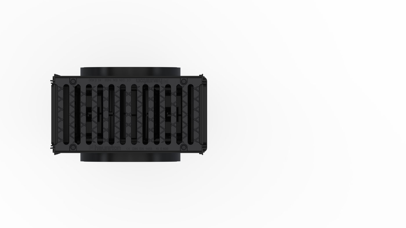 Sump unit with integrated edge frames, with ductile iron cover SW 204/18 mm, KTL-coated, cl. E 600, with 4-fold bolting, with silt bucket made of recycled PP, with 2 end caps made of recycled PP, RECYFIX NC 200, 0.5 m