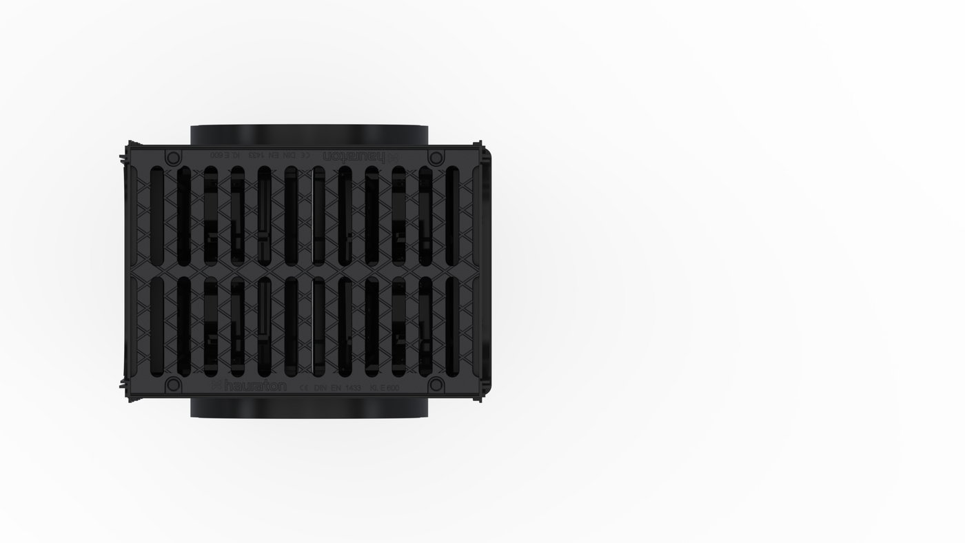 for NW 300, with silt bucket made of recycled PP, with ductile iron cover 2x SW 142/18 mm, KTL-coated, class E 600, with 4-fold bolting, 0.5 m