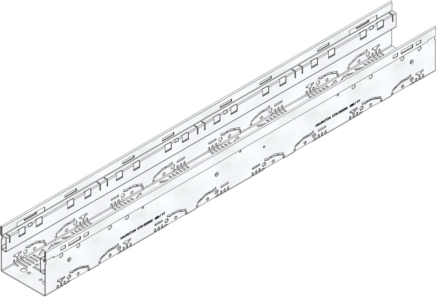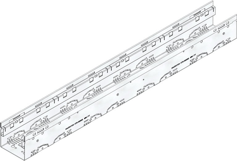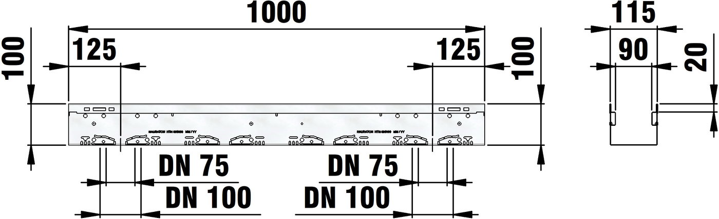 DACHFIX STEEL 115 - улей тип 100, неръждаема стомана CNS 1.4301, проходим и достъпен за инвалидни колички, оребрен, сгъната навътре, с перфорация от двете страни, както и с интегрирана перфорация в областта на основата за пробиване от клиента за присъединителни елементи за улеи DN/OD 75 или DN/OD 110, Д/Ш/В 1000x115x100 mm, арт. № 65060