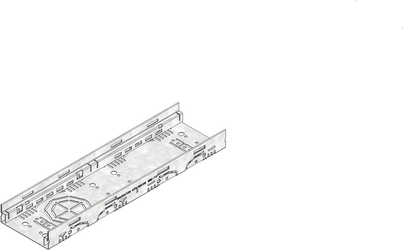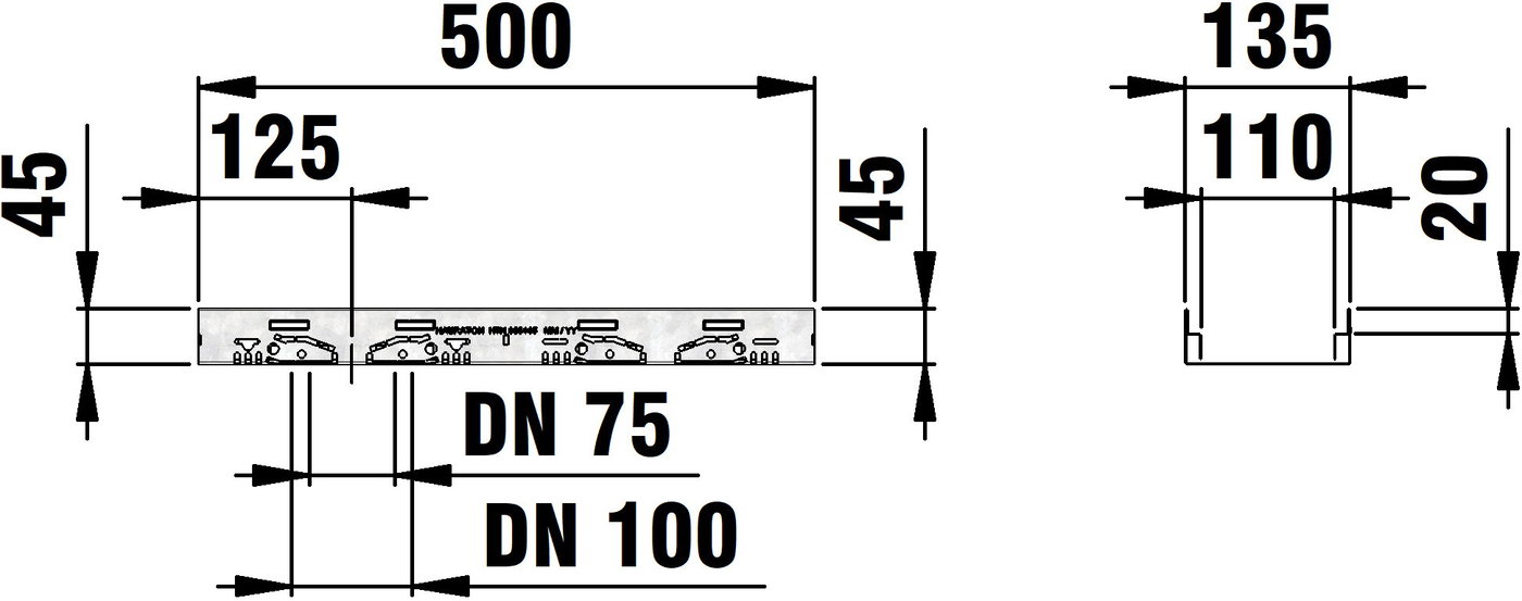 DACHFIX STEEL 135 - улей тип 45, изработен от устойчива на корозия поцинкована стомана, подходящ за движение на пешеходци и достъп за инвалидни колички, оребрена решетка, наклонена навътре, с двустранна перфорация, както и с интегрирана перфорация в основата на улея за изпълнение на място за елемент за свързване на тръби DN/OD 75 или DN/OD 110, Д/Ш/В 500x135x45 mm, артикулен № 65105