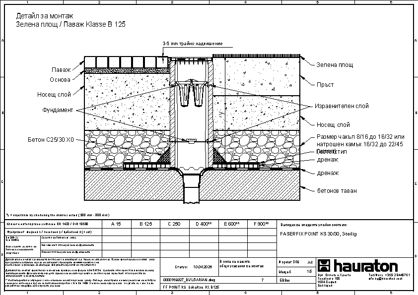 Точков отток FASERFIX POINT KS 30/30, един елемент, с кант от поцинкована стомана, със сифон срещу миризми, изработен от композитен материал, с интегрирана връзка за PVC-U тръба DN/OD 110 и решетка от сферографитен чугун GUGI MW 15/25 mm, черна, клас E 60