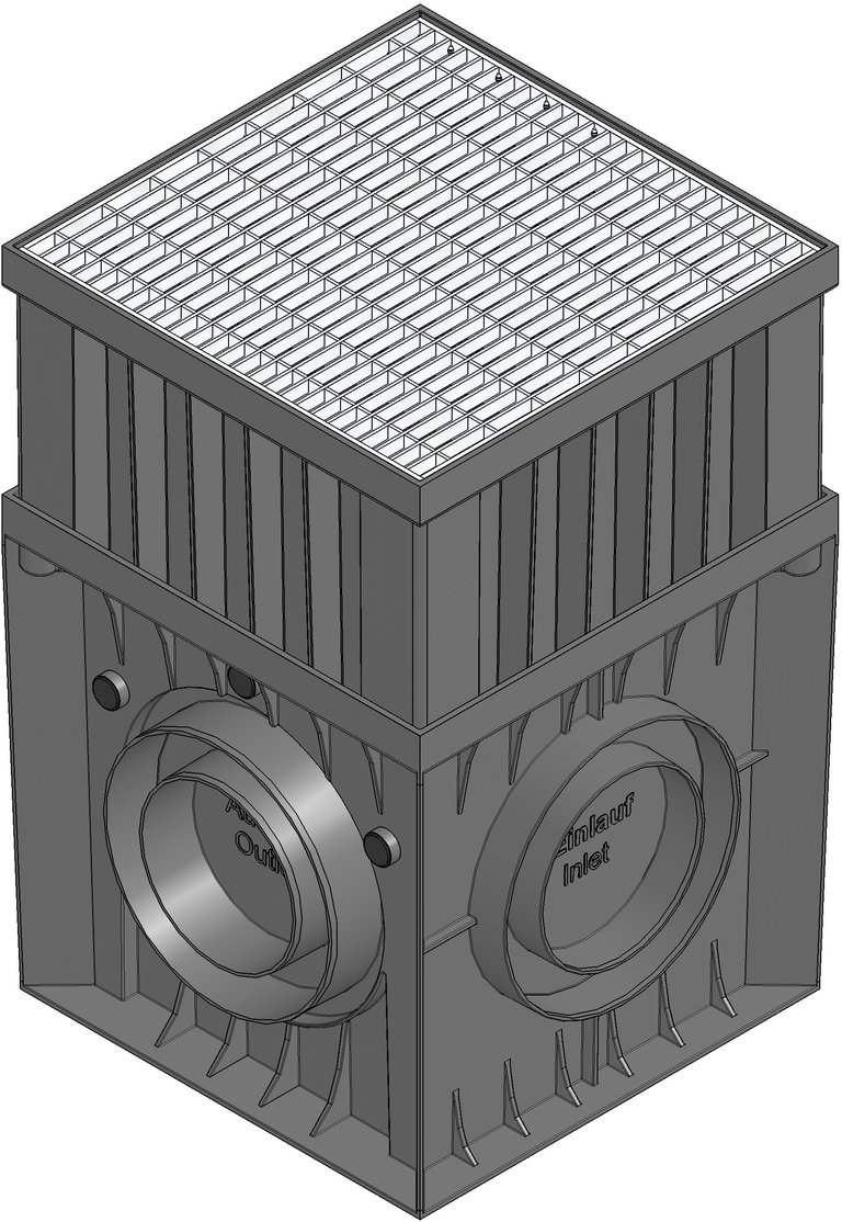 RECYFIX POINT 30/30 - монтажна височина 450 mm, изработен от модифициран PP, с решетка MW 30/10 mm, неръждаема стомана CNS 1.4301 (A ISI 304), с каломаслоуловител и кошница за наноси, с възможност за странично свързване DN/OD 110/160, клас на натоварване A 15, Д/Ш/ В 291x291x300 mm, Арт. номер 10182