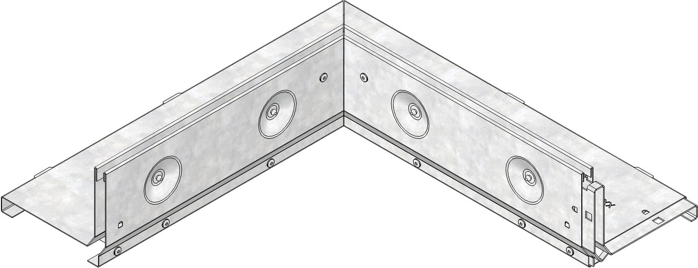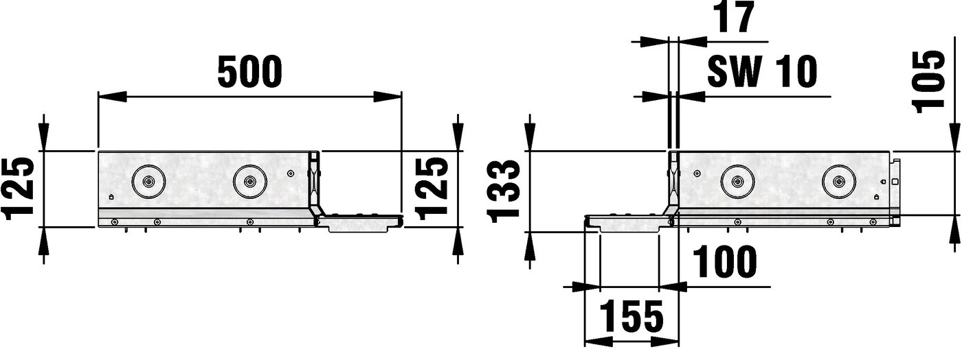 FASERFIX KS/ FASERFIX STANDARD/ RECYFIX PRO 100 - Шлицов капак SW 10 mm, височина на шийката 105 mm, поцинкован, асиметричен, като ъглов елемент, за външен ъгъл 90°, с интегриран, по цялата повърхност свързващ елемент, клас на натоварване A 15, дължина на рамото 500 mm, артикулен №. 33131