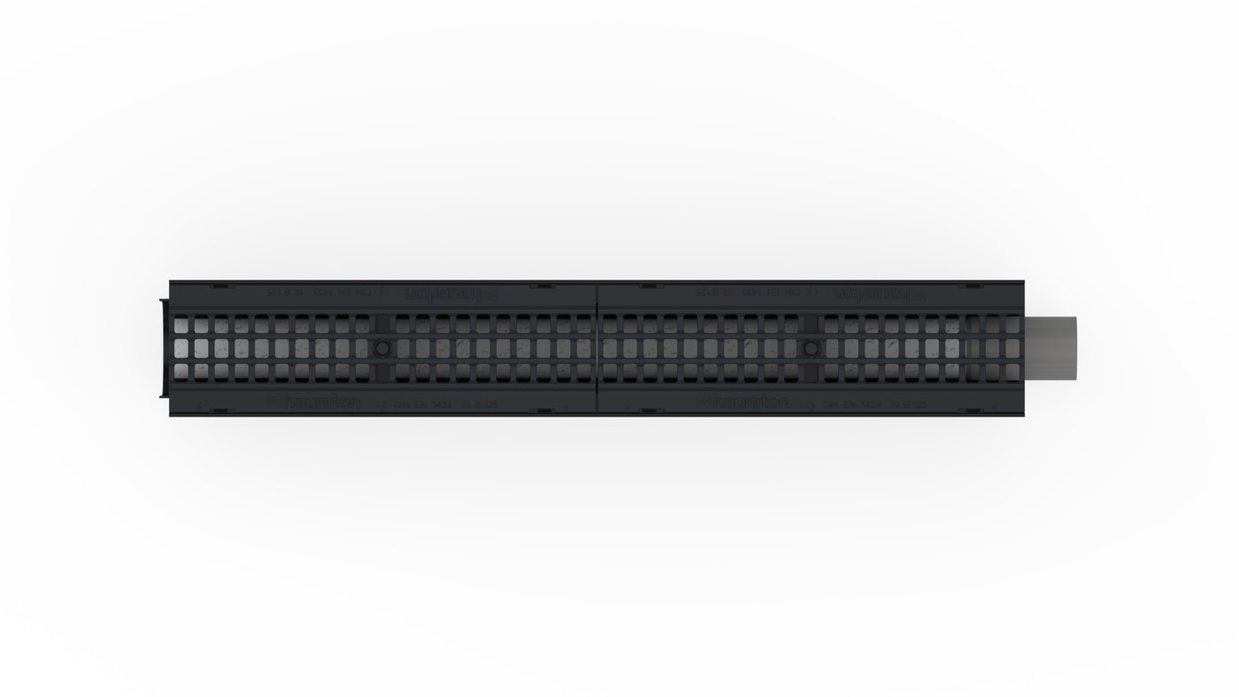 SPORTFIX CLEAN 100 тип 020, междинна част, с решетка GUGI MW 15 /25, черна, кл. B 125 и дренажна тръба с геотекстил и свързваща част , отворена, вкл. 10 л филтърен субстрат CARBOTEC 60, 1 м