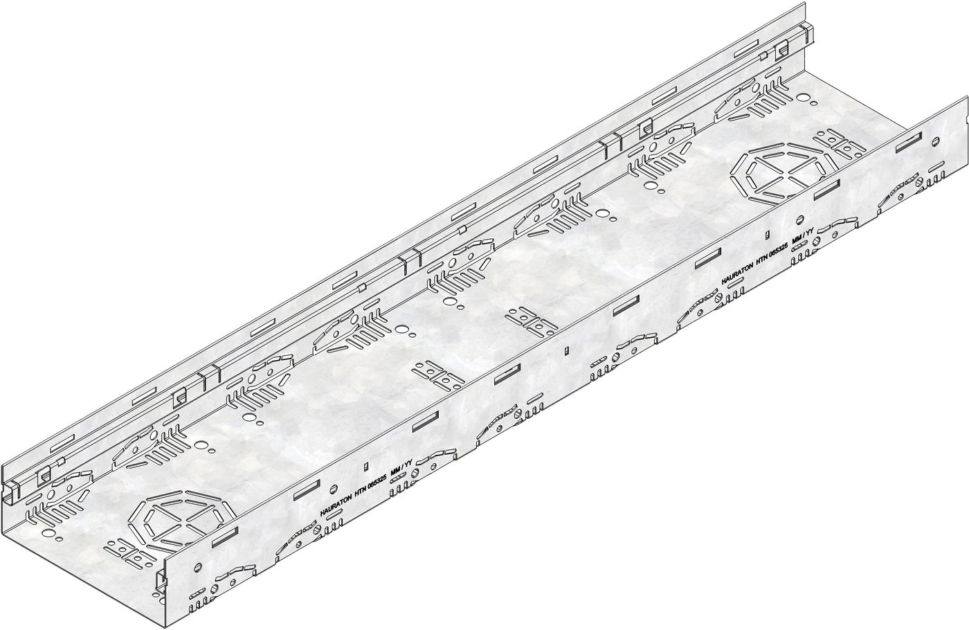 DACHFIX STEEL 205 - žlab, typ 75 z pozinkované oceli, s aretačním systémem, vhodný pro chodce i pro osoby s pohybovým omezením, perforace po obou stranách žlabu, předpřipravené prolisy DN 75 nebo DN 100 pro napojení potrubí, D/Š/V 1000x205x75 mm, obj.č. 65325