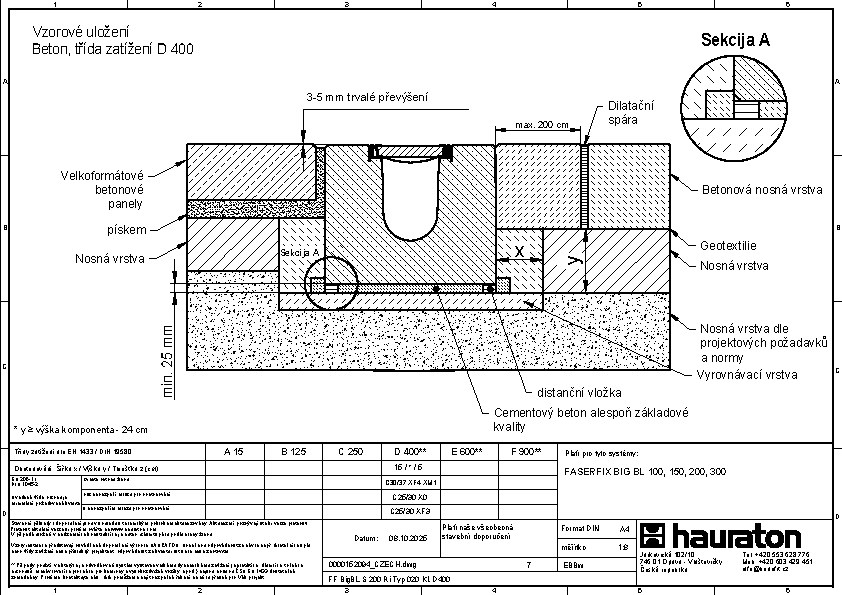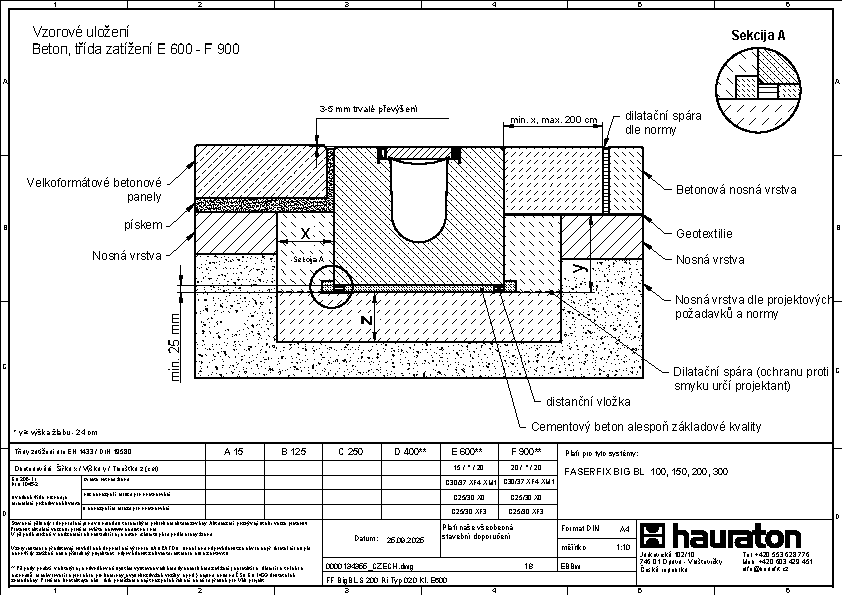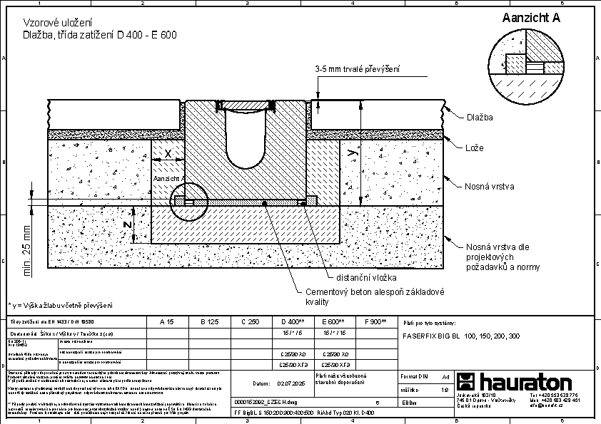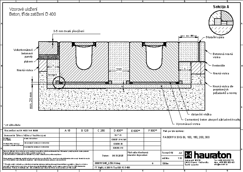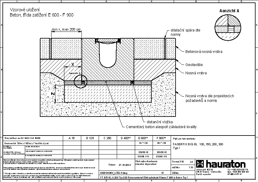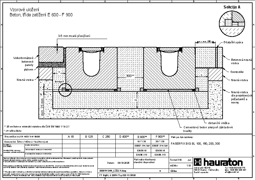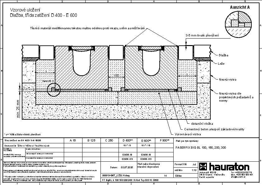 FASERFIX BIG BL 200 – žlab, Typ 020, ze železobetonu C50/60, třída zatížení až do F 900 dle ČSN EN 1433, CE označení, rámy z pozinkované oceli se SIDE-LOCK aretačním systémem krytů bez šroubů, celkem 8 bodů zajištění krytů, ochrana proti podélnému pohybu krytu, těsnící drážka, D/Š/V 1000x600x490 mm, obj.č. 83799
