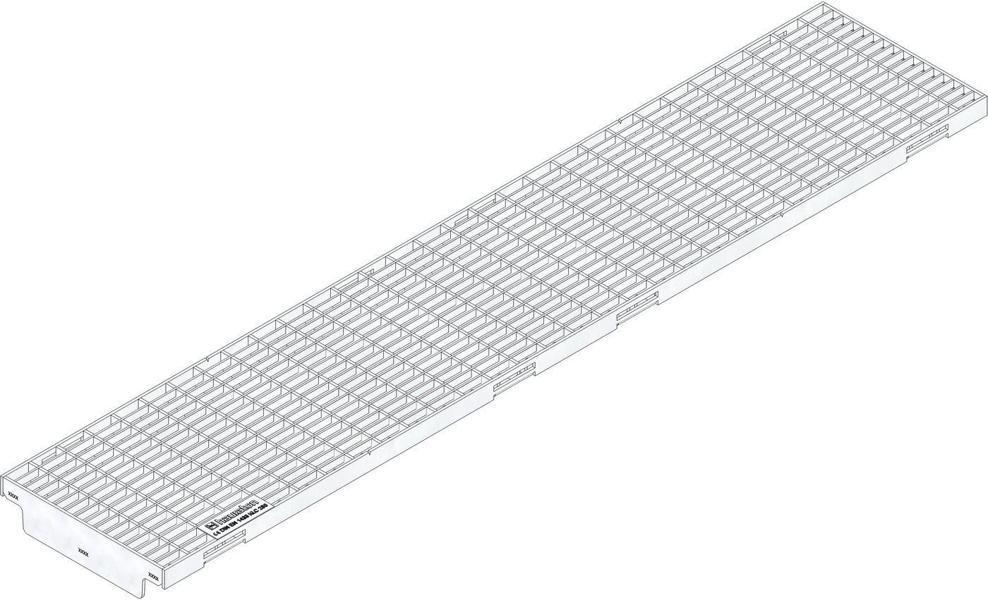 FASERFIX KS 150 – pororošt, MW 30/10, z nerezové oceli, třída zatížení C 250 dle ČSN EN 1433, CE označení, SIDE-LOCK aretační systém krytů bez šroubů, D/Š/V 1000x199x20 mm, obj.č. 11575