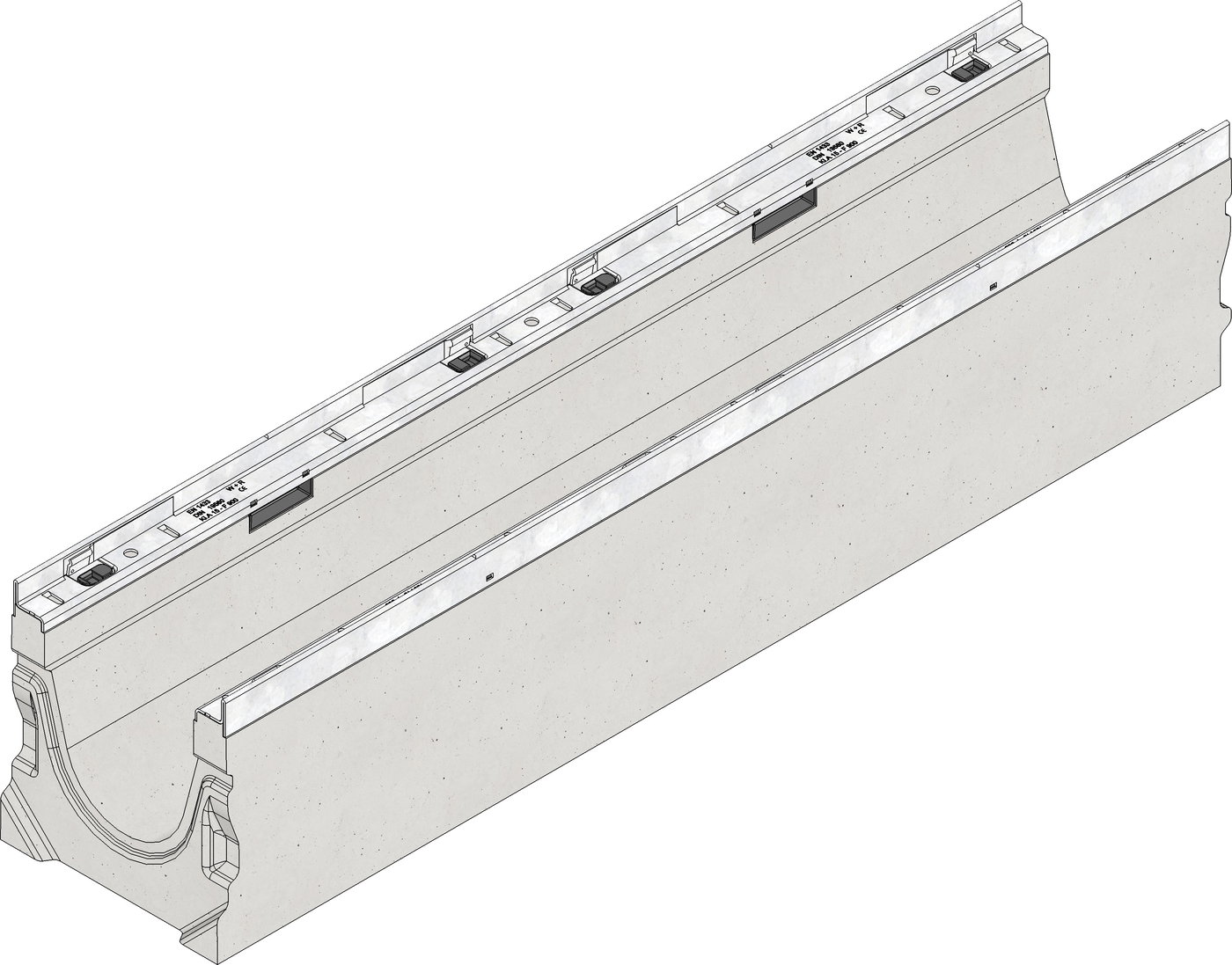 FASERFIX KS 150 – žlab, typ 01, z betonu vyztuženého vlákny, třída zatížení až do F 900 dle ČSN EN 1433, CE označení, rámy z pozinkované oceli se SIDE-LOCK aretačním systémem krytů bez šroubů, celkem 8 bodů zajištění krytů, ochrana proti podélnému pohybu krytu, těsnící drážka, D/Š/V 1000x210x220 mm, obj.č. 11000