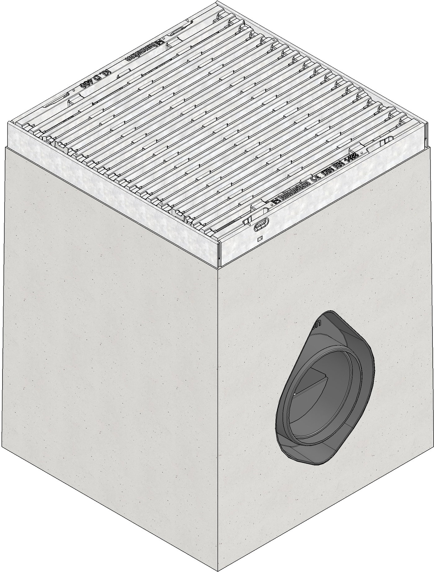 FASERFIX POINT KS 30/30 – bodová odtoková vpust z betonu vyztuženého vlákny, třída zatížení až do D 400 dle ČSN EN 1433, CE označení , rámy z pozinkované oceli, s Iitinovým krytem s podélnými štěrbinami, SW 8, pozinkovaná úprava, se SIDE-LOCK aretačním systémem krytů bez šroubů, ochrana proti podélnému pohybu krytu, plastový koš, boční odtok s integrovaným PVC-U adaptérem DN 110, D/Š/V 300x300x400 mm, obj.č. 33236