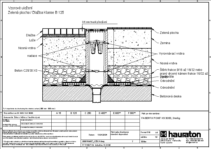 FASERFIX POINT KS 30/30 odtoková vpust s plastovým košem a GUGI litinovým pororoštem, MW 15/25, černý, třída E 600, odtokový adaptér DN 110, 0,3 m