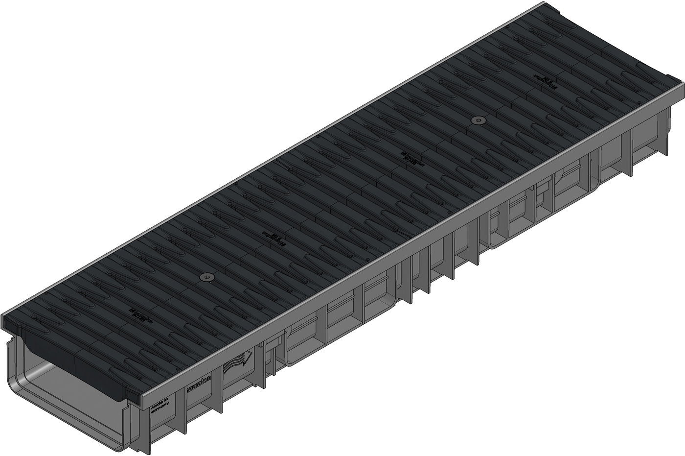RECYFIX PRO 200 - žlab z PP kompozitu s integrovaným PP rámem, typ 115 s FIBRETEC kompozitním krytem, SW 9, PA-GF, černý, s aretačním systémem, ochrana proti podélnému pohybu krytu, třída zatížení až do B 125 dle ČSN EN 1433, odtok ze dna žlabu DN 75/100, D/Š/V 1000x262x115 mm, obj.č. 47233