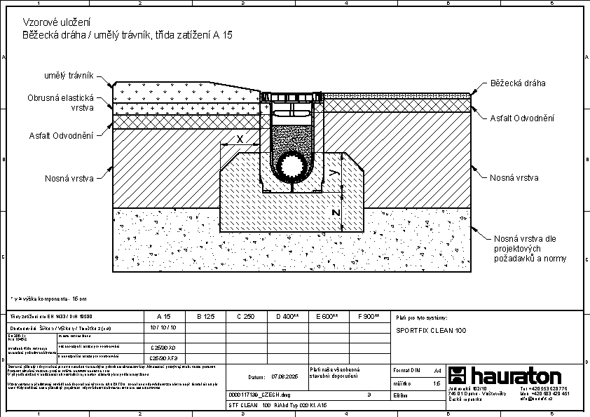 SPORTFIX CLEAN 100, filtrační žlab s GUGI pororoštem, třídy B 125, filtračním potrubím s geotextílií