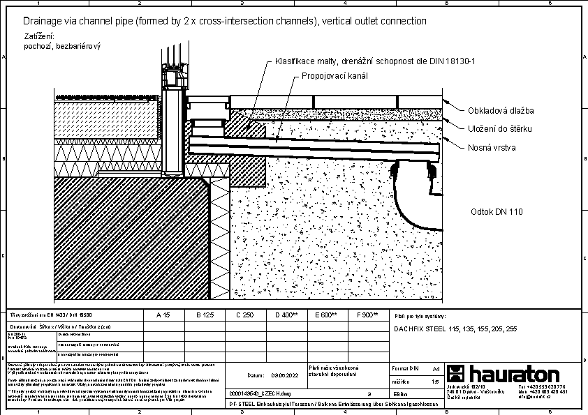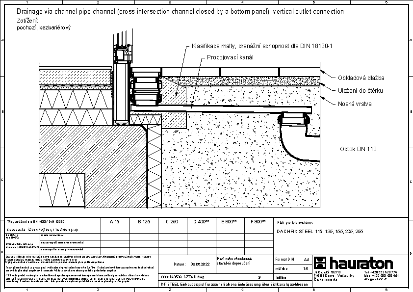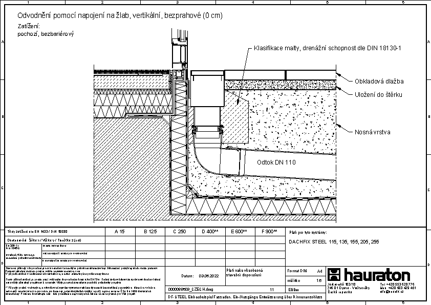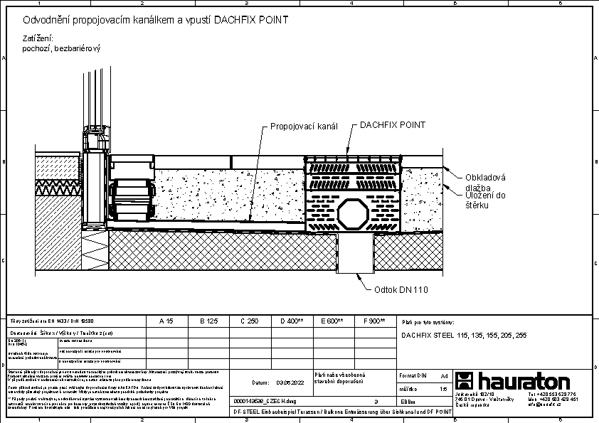 Bezbariérový přístup, odvodnění pomocí propojovacího kanálku a vpusti DACHFIX POINT