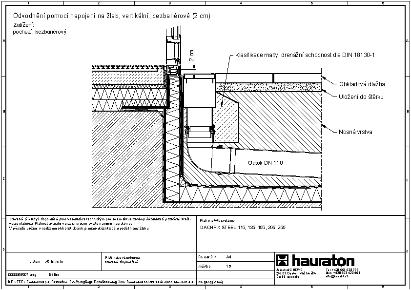 Bezbariérový přístup, odvodnění pomocí napojení na žlab, svislé napojení, bezbariérový práh (2 cm)