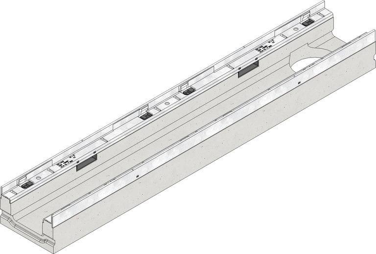 FASERFIX KS 100 Flachrinnenunterteil Typ 100L mit Öffnung DN/OD 110, mit verzinkten Stahlzargen, 1 m