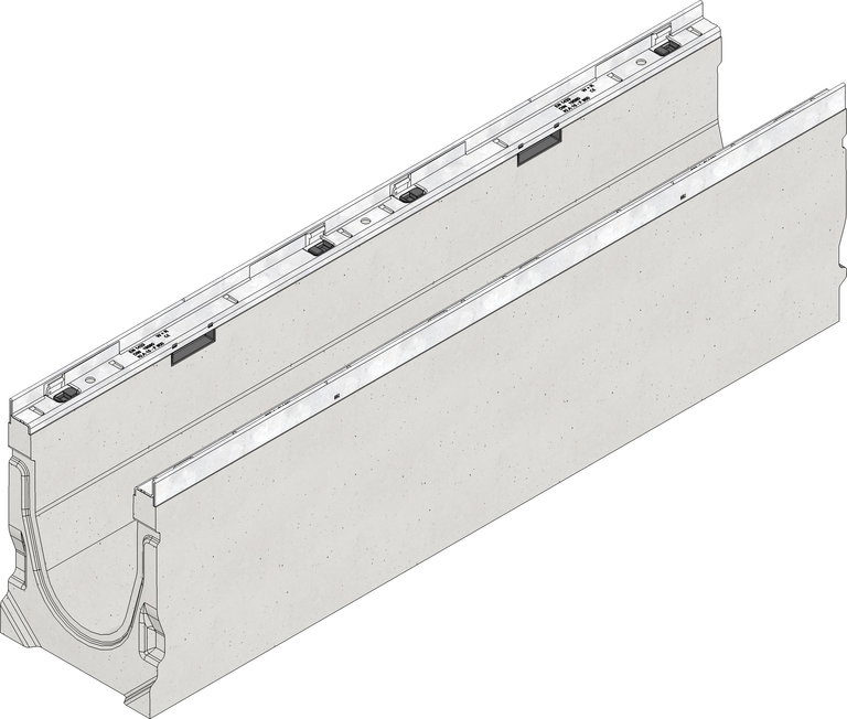 FASERFIX KS 150 Typ 015 - Rinnenunterteil aus faserbewehrtem Beton, Belastungsklasse A 15 - E 600 nach DIN 19580/EN 1433, CE-konform , mit verzinkter Stahlzarge und schraublosem Schnellverschluss SIDE-LOCK für schnelle und einfache Montage der Abdeckung, zusätzlich Knebelverschraubung möglich, 8-fache Arretierung, mit Dichtungsfalz, LxBxH 100x210x290 mm, Art.-Nr. 11043