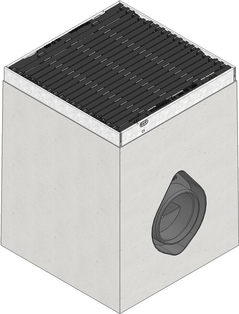 FASERFIX POINT KS 30/30 - Punkteinlauf aus faserbewehrtem Beton, mit umlaufender Zarge aus verzinktem Stahl, mit integriertem KG-Rohranschluss DN/OD 110, mit Geruchsverschluss, Schmutzfangeimer aus Kunststoff und Guss-Längsstabrost aus Sphäroguss EN-GJS, Stababstand 8 mm, KTL-beschichtet, mit schraublosem Schnellverschluss SIDE-LOCK, Belastungsklasse A 15 - D 400, L/B/H 300x300x400 mm , Art.-Nr. 33233