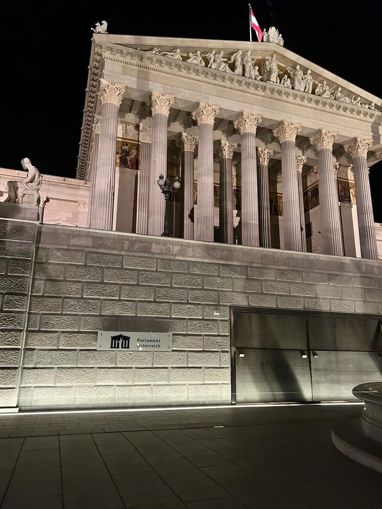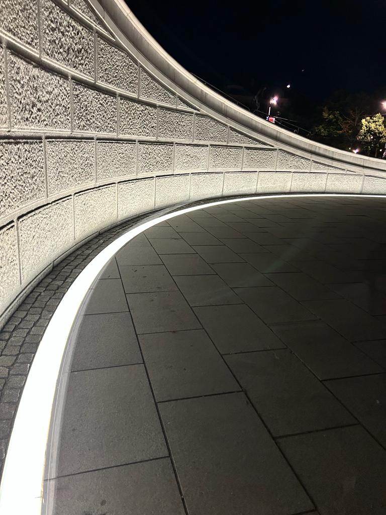 Für das Projekt am österreichischen Parlament entwickelte HAURATON speziell angefertigte Schlitzrinnen aus Edelstahl V4A, die sich präzise in die architektonische Gestaltung der Außenanlagen einfügen. Die Rinnen wurden exakt auf den ellipsenförmigen Verlauf der Wege abgestimmt und mit begehbaren Glasabdeckungen inklusive integrierter LED-Beleuchtung ausgestattet – eine Kombination aus technischer Leistungsfähigkeit und gestalterischer Raffinesse.
