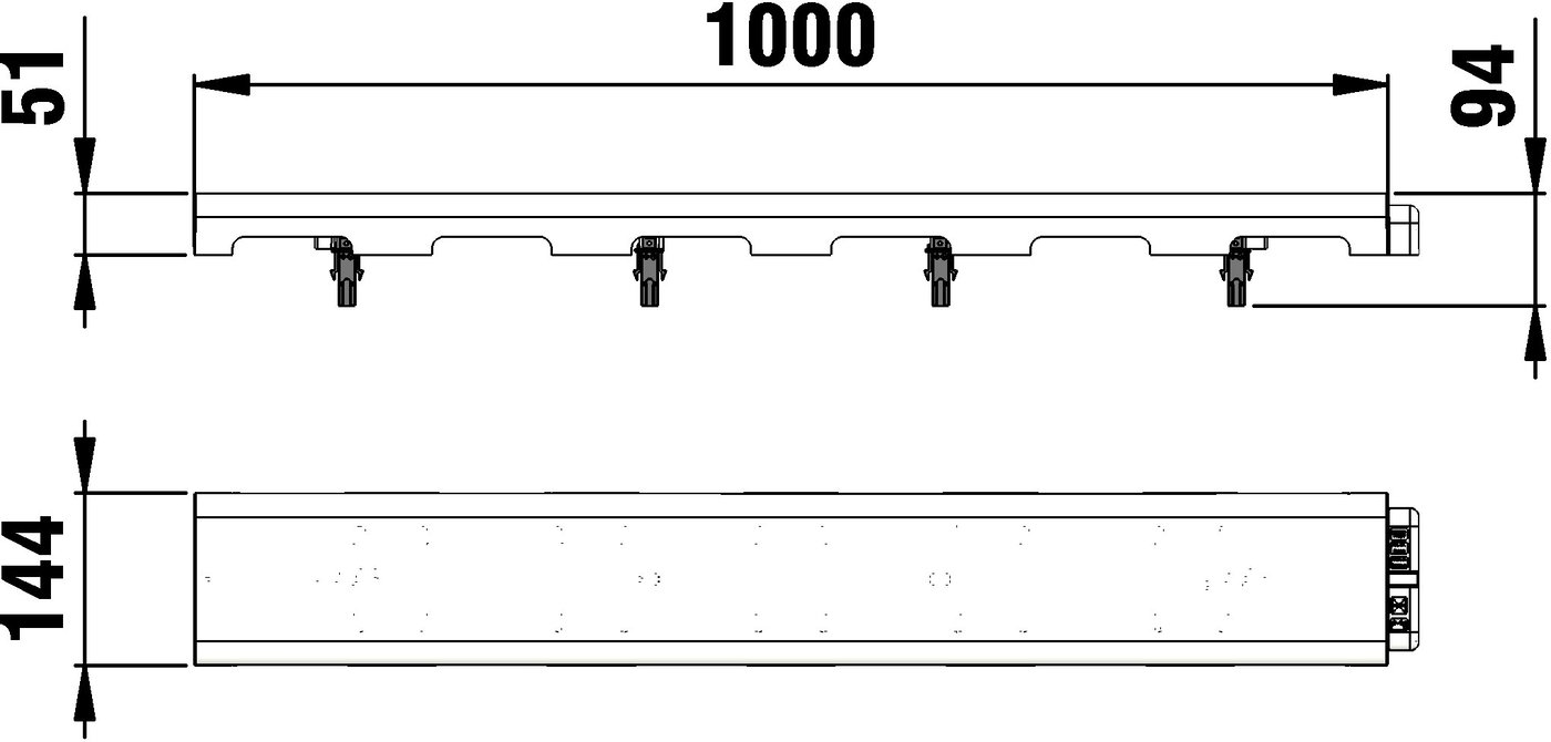 SPORTFIX Laufbahnabdeckung, gerade, mit beidseitigem Einlauf, aus UV-beständigem, bruchsicherem Kunststoff, weiß, mit Positionierungspins, als innere Laufbahnbegrenzung, nach Bedarf abnehmbar und wieder anbringbar, zur Befestigung auf SPORTFIX Schlitzrinne, gerade, gemäß den Anforderungen der World Athletics, LxBxH 1000x144x51 mm, Art.-Nr. 10802